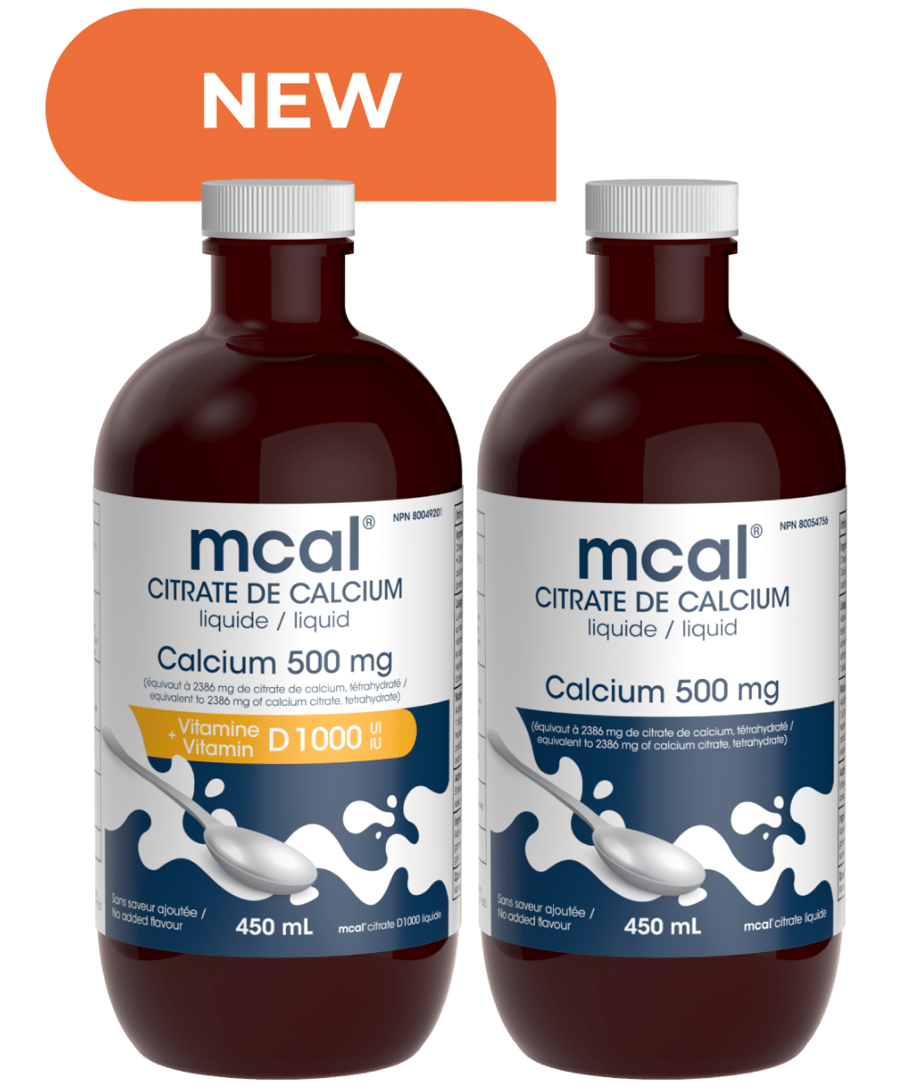 Osteoporosis Canada informs us that barely 10%* of adults over 50 consume enough calcium in their diet. That is why mcal offers a complete range of calcium supplements, available with or without vitamin D and in tablet (carbonate) or liquid (citrate) form. Over the years, our family of supplements has proven its effectiveness, and it continues to evolve.