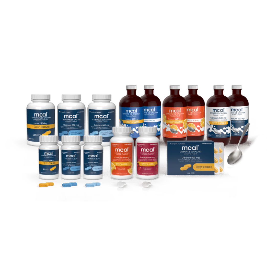 Experte dans le domaine, Mantra est fière d’offrir mcal, une gamme complète de suppléments de calcium. Ainsi, on retrouve des formats offerts avec ou sans vitamine D, sous forme de comprimés (carbonate) ou de liquide (citrate). Une variété de teneurs sont également offertes. Notre famille de suppléments a démontré son efficacité au fil des années et continue d’évoluer. Découvrez le meilleur choix de suppléments de calcium pour vos patients.